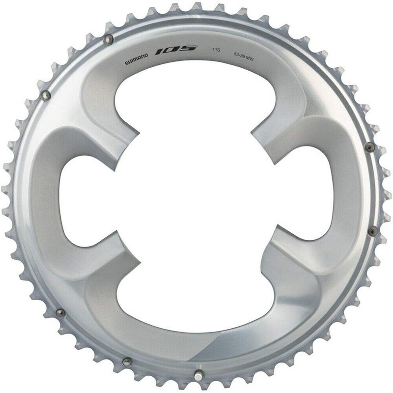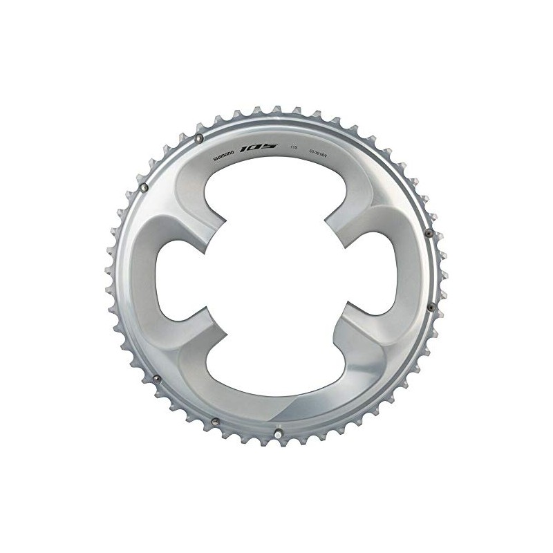 105 FC-R7000 asymmetric 110 BCD chainrings with for 2x11 speed drivetrains.Features-For 53/39t pairingItem Specifications-Ring Position/Type:Outer-Tooth Count:53-Drivetrain Speeds:11-Chainring BCD:110 Asymmetric-Color:Silver-Defined Color:Silver