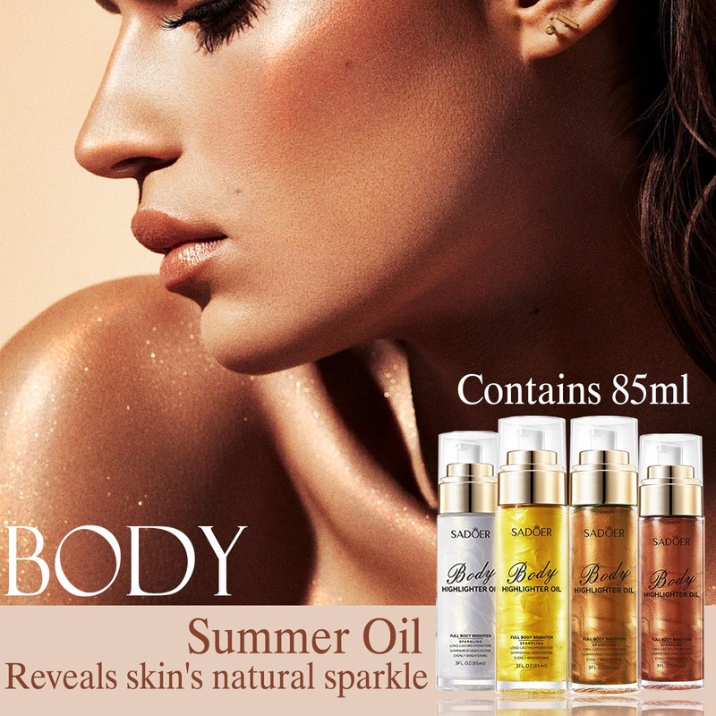 - 【VERSATILE】Available in 4 colors, you can use this body glitter spray as even tanning body oil on its own, or use it for makeup facial highlighting, contouring, bronzing and more. This liquid highlighter oil has a subtle and natural shine, giving your skin a natural glow!