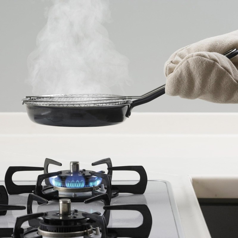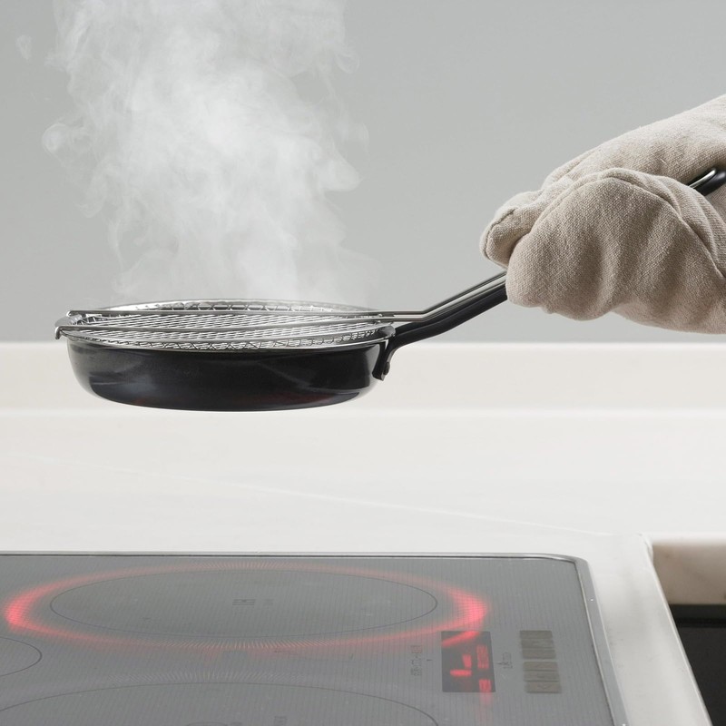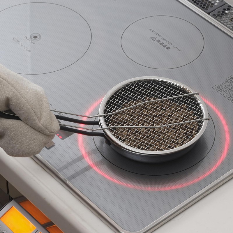 • Material: Body: Iron (silicone resin coating, bottom thickness: 0.06 inch (1.6 mm)), Net: 18-8 stainless steel (diameter 0.7 mm x 4 mesh)
