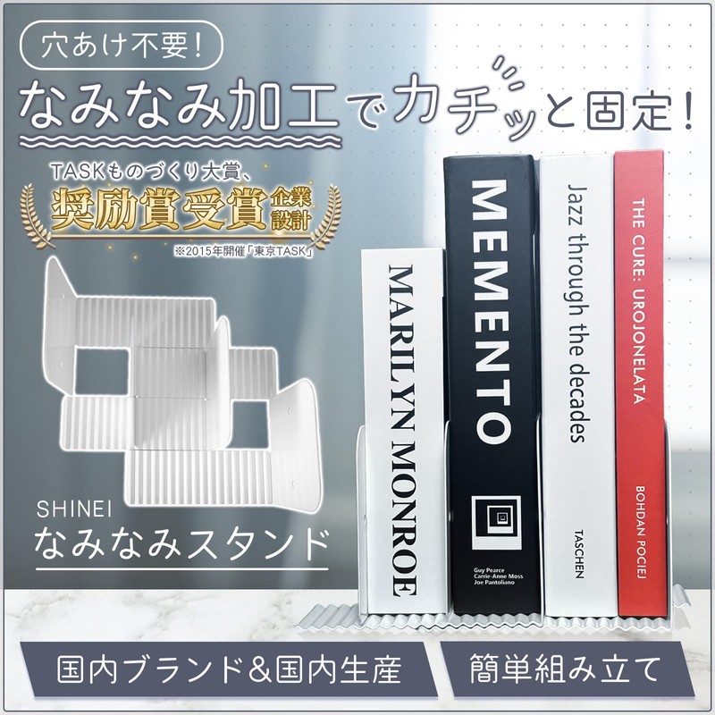 SHINEI Namami Stand (White / Set of 4 / Made in Japan), Bookends, No Falling, Book Stand, Book Stand (Easy to Fix, Book Not Falling, Adjustable Width, Various Uses), Panel Stand, Partition Base