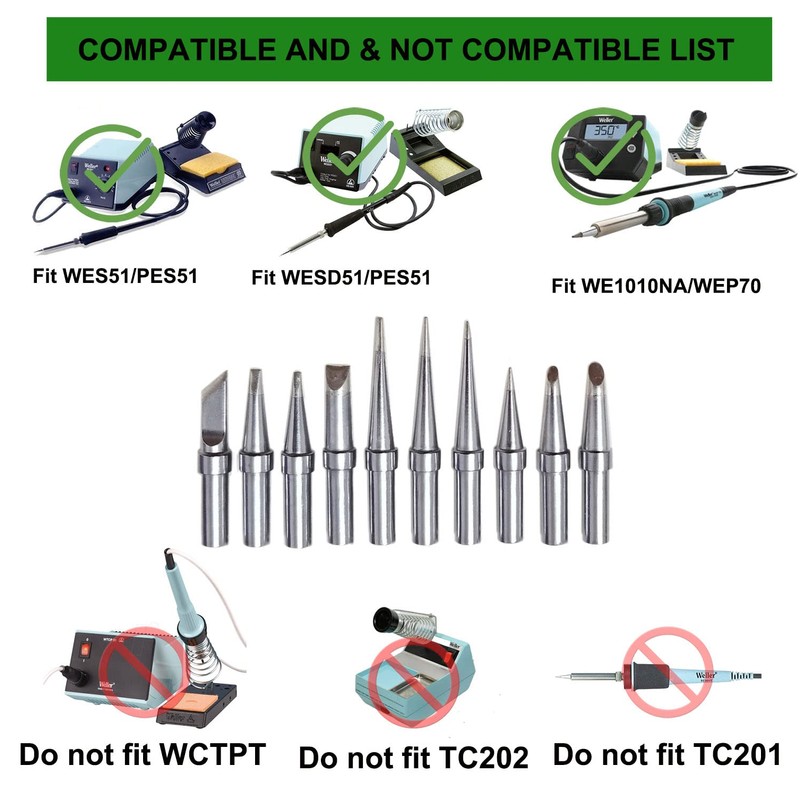 - ⚪ COMPATIBILITY These are replacement weller solderingtips,fit weller WE1010,WE1010NA,wes50 wes51 wesd51 we1010 wcc100 solder stations, pes51 pes50 wcc101 EC1201A soldering irons