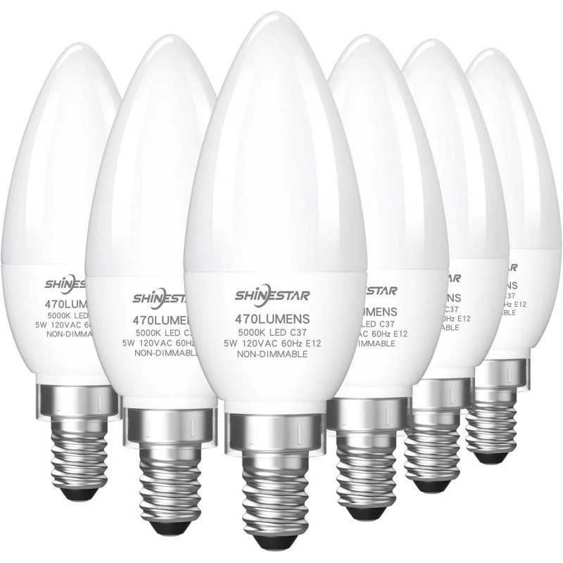 SHINESTAR 6Pcs LED Candelabra Bulb B11 C37 Ceiling Fan Bulb 5W/40W E12 Base 5000K Daylight