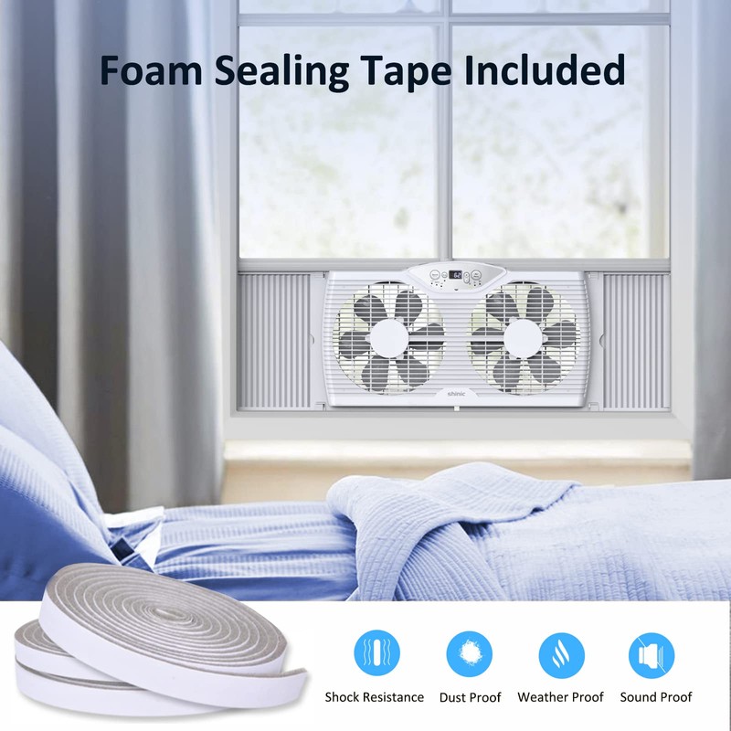 shinic Twin Window Fan, 9-Inch Blades Reversible Airflow, Thermostat Control, 3 Speeds, 3 Functions, 23.8"-37" Expandable Width, Window Exchaust Fans for Home Bedroom, ETL Certified