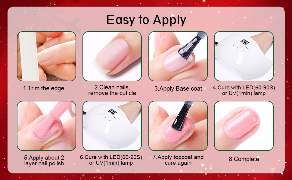 - Semi-permanent Christmas nail colors: There are 10 different colors of nail glue. Fashionable colors can meet your Christmas style needs, 8ml per bottle, beautiful and elegant, suitable for daily use.