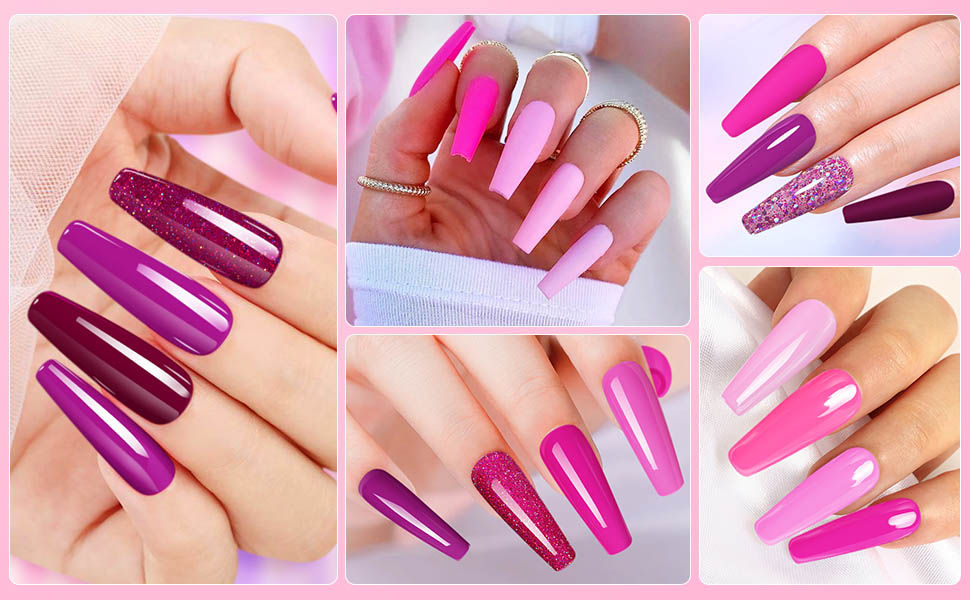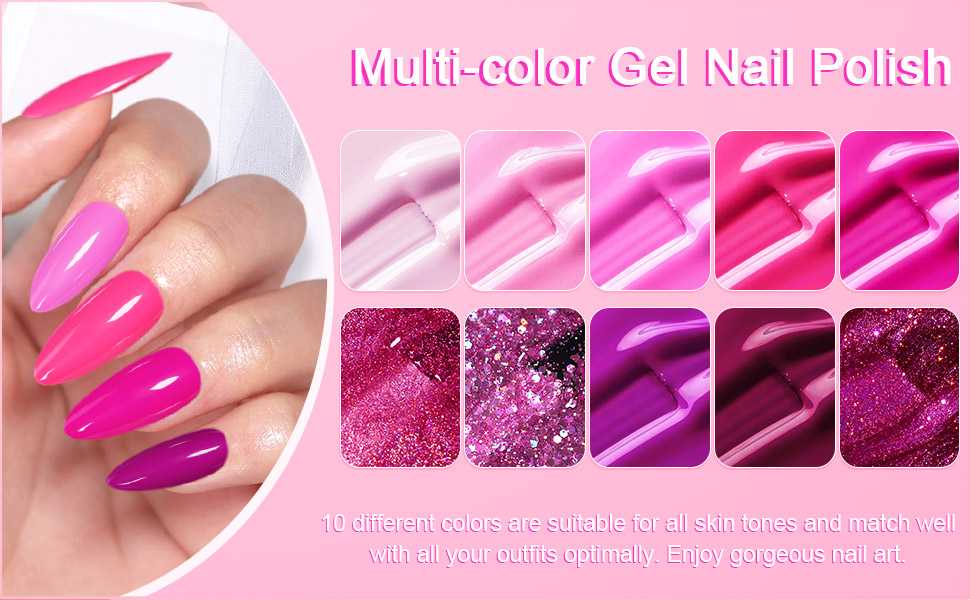 Shining She Semi-Permanent Nail Polish,10 Colors Fuchsia Pink Glitter Semi-Permanent Nail Polish Soak Off UV LED Semi-Permanent Nail Polishes for Nail Art DIY at Home,8ML