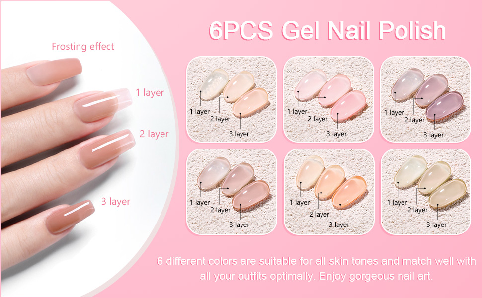 Shining She Semi-Permanent Nail Polish, 6 Colors Transparent Nude Pink Nail Polish Set, Dip UV Lamp Gift for DIY Nail Art Salon, 8ML