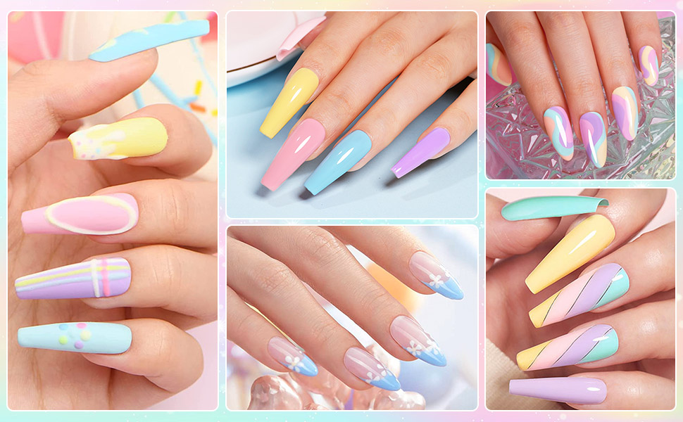 - Pastel Gel Nail Polish: The gel nail polish set with 6 classic macaroom colors, 8ml/0.27oz per bottle. Suitable for all seasons and daily use.