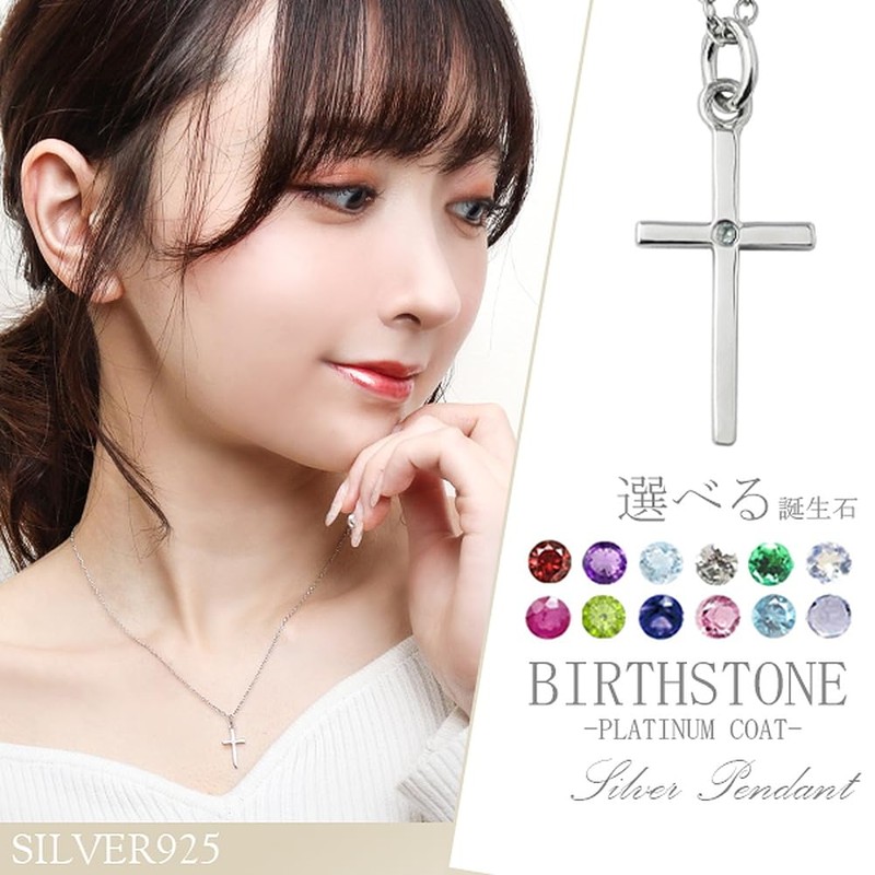 Shinjuku Gin no Kura, Choice of Birthstone, Platinum-Coated, Silver 925, Cross Necklace, Women's, Dainty, December: Tanzanite