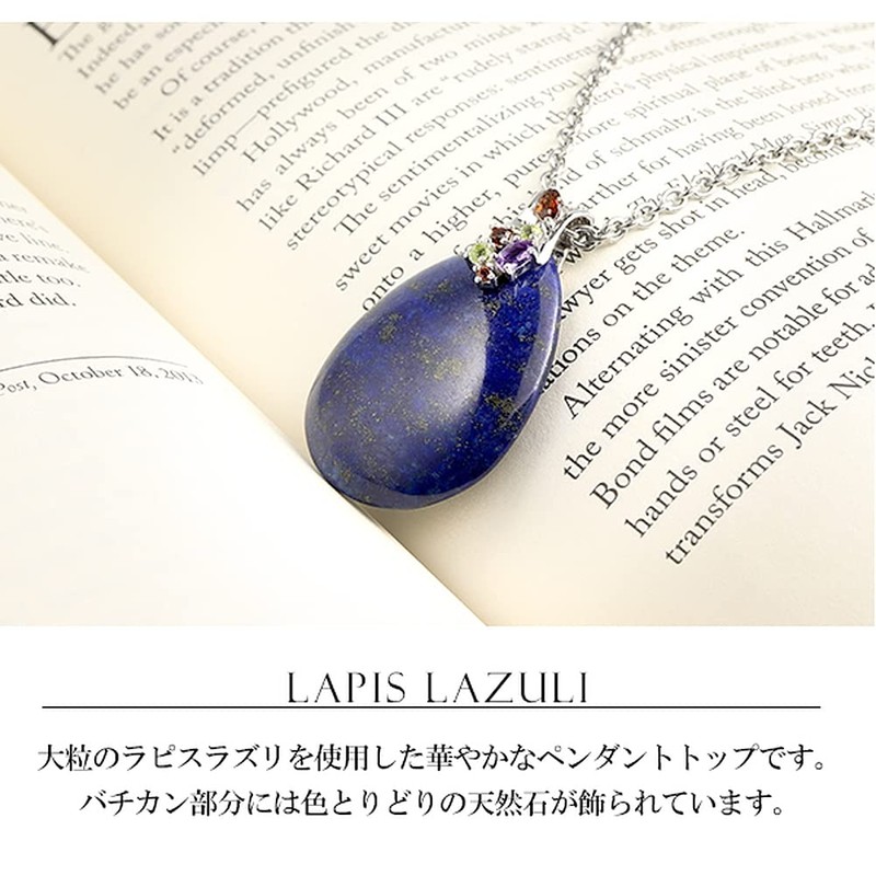 This necklace features a voluminous drop-shaped lapis lazuli with an elegant design.