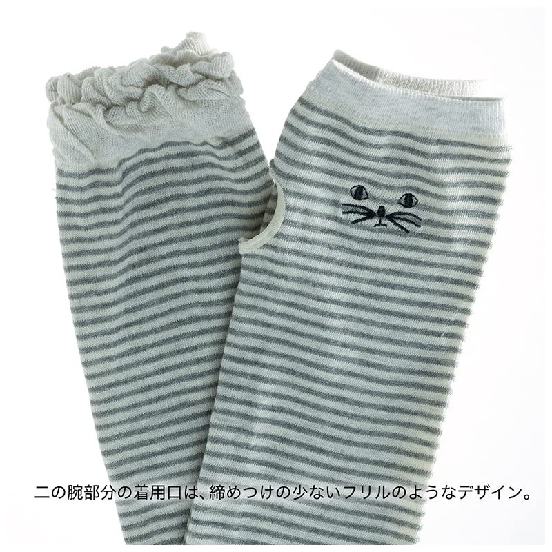 SHINPUR Arm Cover, Sunburn Protection, UV Protection, Arm Warmer, Women's, Men's, Gloves, Long, UV Protection, UV Protection, For Air Conditioning, Outdoors, Summer, Cat [Gray Border]