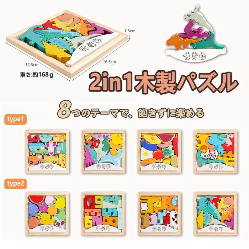 Shinse 2 in 1 Wooden Puzzle, Shaping Puzzle, Balance Game, Shape Matching, 3,...