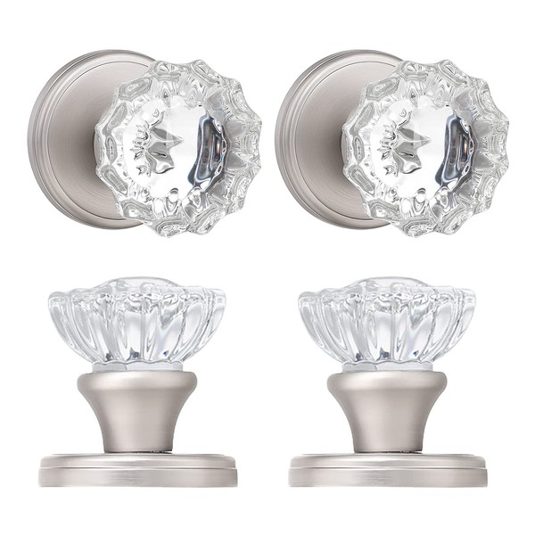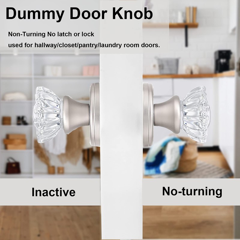 SHINY HANDLES 4 Pack Crystal Dummy Door Knob Brushed Nickel, Inactive Glass Half-Dummy Door Knobs for Hall/Closet