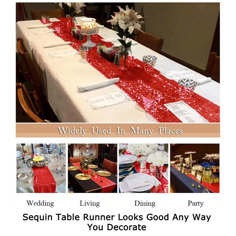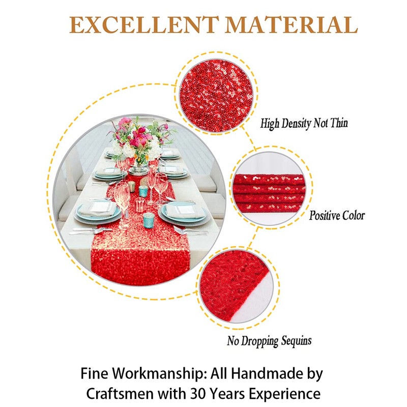 • Sequin Table Runner: Made of high density sequin fabric,countless sparkle sequins on mesh fabric, the table runners are not see through.
