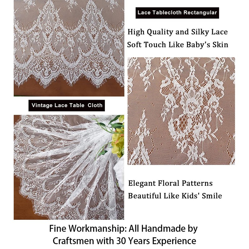 - ❤LACE TABLECLOTH RECTANGLAR : made of high quality and soft touch lace , rectangular nylon lace tablecloth featuring elegant floral patterns and scalloped edges with fashionable eyelash lace.