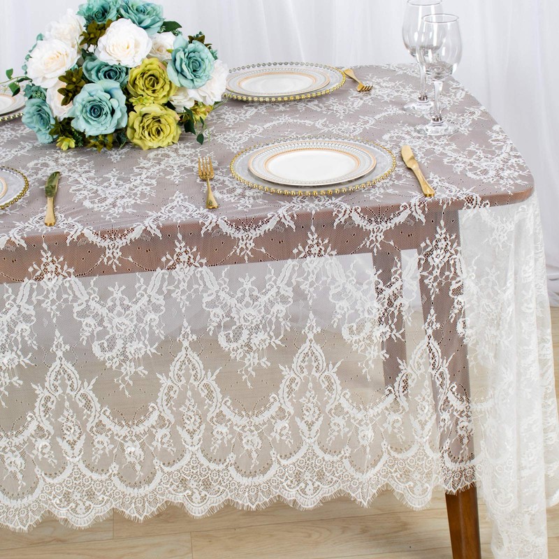 Wedding LACE Tablecloth Runners are classic staples in weddings that call for timeless, classy and sophisticated touches. Also known as rectangle lace table overlays, through the years, lace table toppers have become a darling in country, vintage, shabby-chic and rustic weddings. The floral patterns these lace table cloths feature add extra elegance to the overall look of your wedding style.