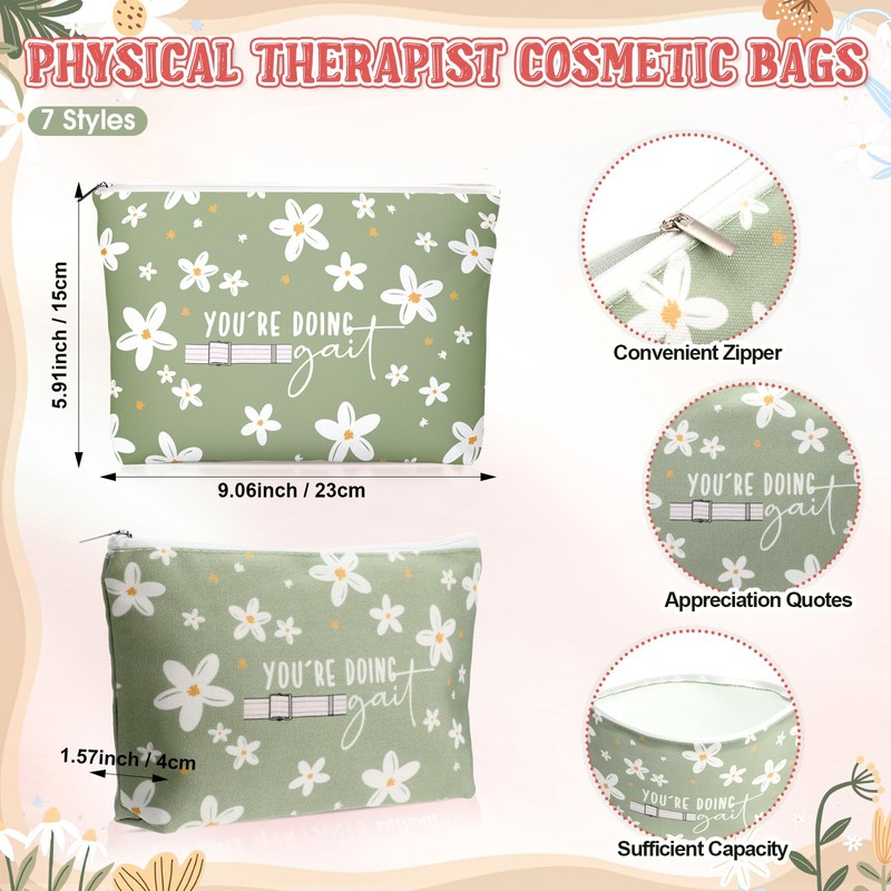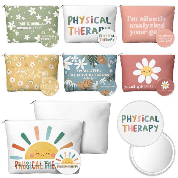 - Package Includes: there are 14 gifts in our set of physical therapy gifts, including 7 cosmetic bags with different designs and 7 small round mirrors; The sufficient quantity is enough for your daily use and is also an ideal gift for physical therapists, friends, colleagues, women or teams