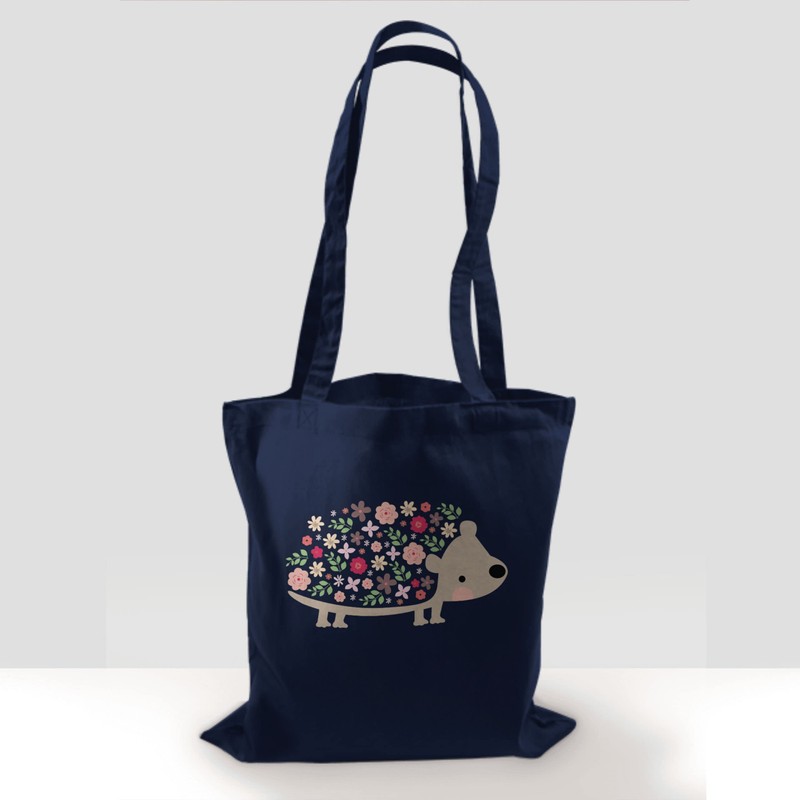 Shirtracer - Cotton Bag - Easter Gift Easter - Cute Hedgehog Spring Animals with Flowers, 3 Navy Blue
