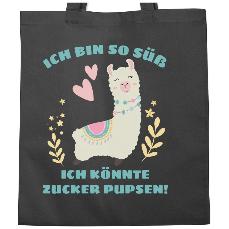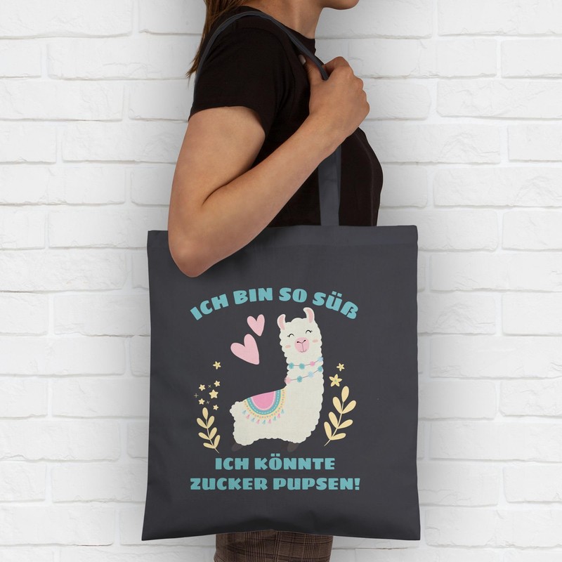 Shirtracer - Cotton Bag - Statement Sayings Children - Lama Ich bin so süß ich könnte Zucker Pupsen, 1 Dark Grey