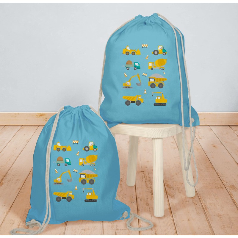 Shirtracer - Gym Bag Backpack - Children's Tractor Excavator etc. - Construction Sites Vehicles, 06 Light Blue, Unit size