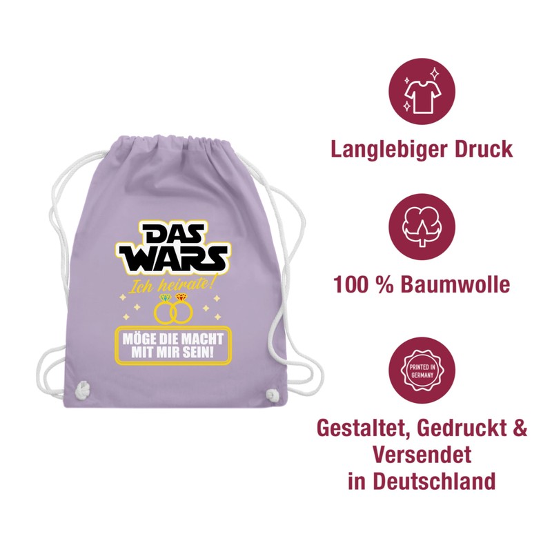 Shirtracer - Gym Bag Backpack - JGA Stag Night Men - Das Wars - Ich heirate - Yellow/White, 06 Pastel Purple