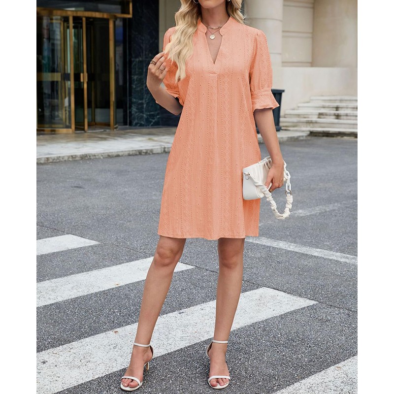 - Features:short dress, V-neck, bell sleeve, shift dress,ruffle, simple and plain,sweet & cute, soft and attractive.Can wear a belt to shape if you like
