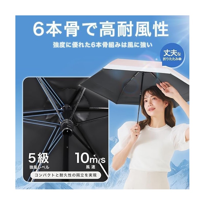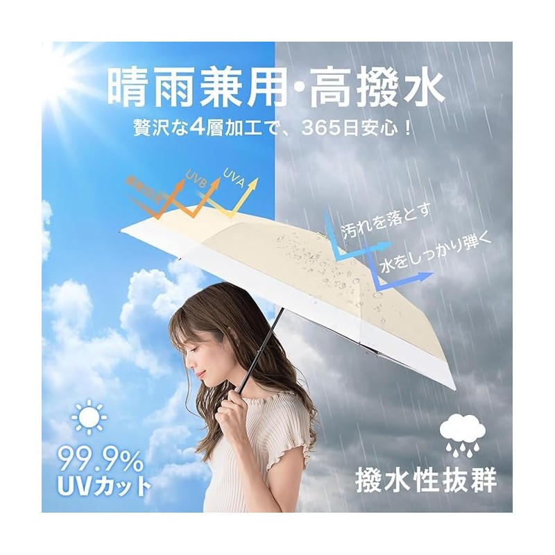- [For use in both sunny and rain and windproof] Made of high-density water repellent material, the rain will roll up like a bead and roll off. It has superior water repellency than ordinary umbrellas, and just shake it off the rain water. No more worrying about rain getting through even after long periods of use. You won't be bothered by people in public places such as trains. The fabric is also stain resistant and stain resistant. The shaft is made of sturdy aircraft aluminum alloy, 6 ribs made of fiberglass and aircraft aluminum alloy. Durable It will return to its original even if it is flipped over in strong winds