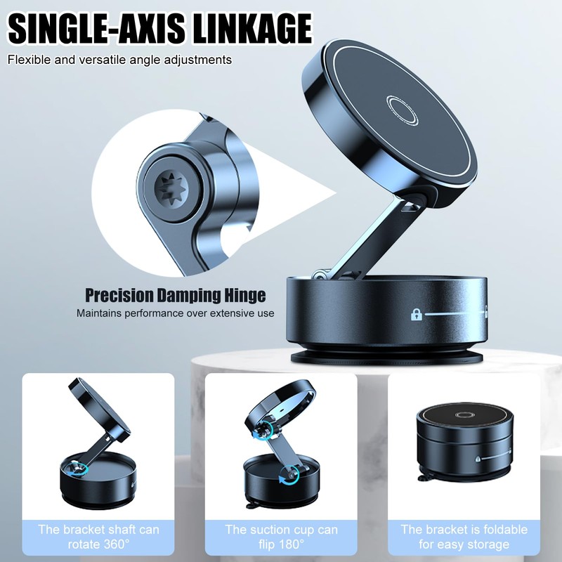 - [One-hand Operation] Featuring automatic alignment technology, this phone stand allows instant device attachment with just one hand. the innovative single-axis linkage design enables smooth 360-degree rotation and 180-degree flip adjustments, providing suitable viewing angles for navigation or entertainment without distracting from driving.