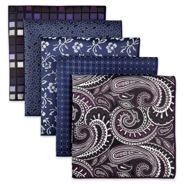 SHLAX&WING 5 Pieces Assorted Mens Silk Pocket Square Handkerchiefs Set 75