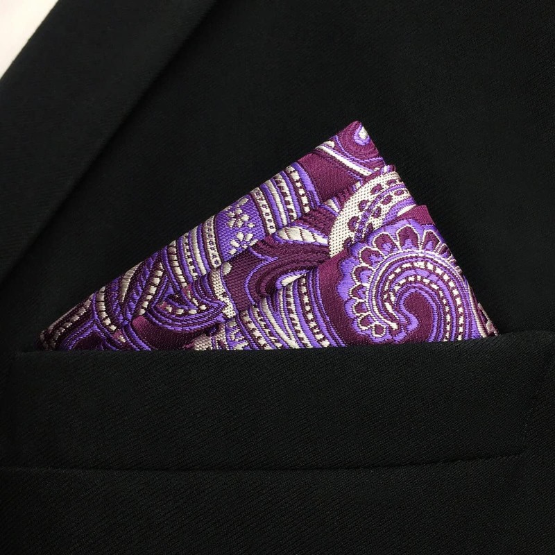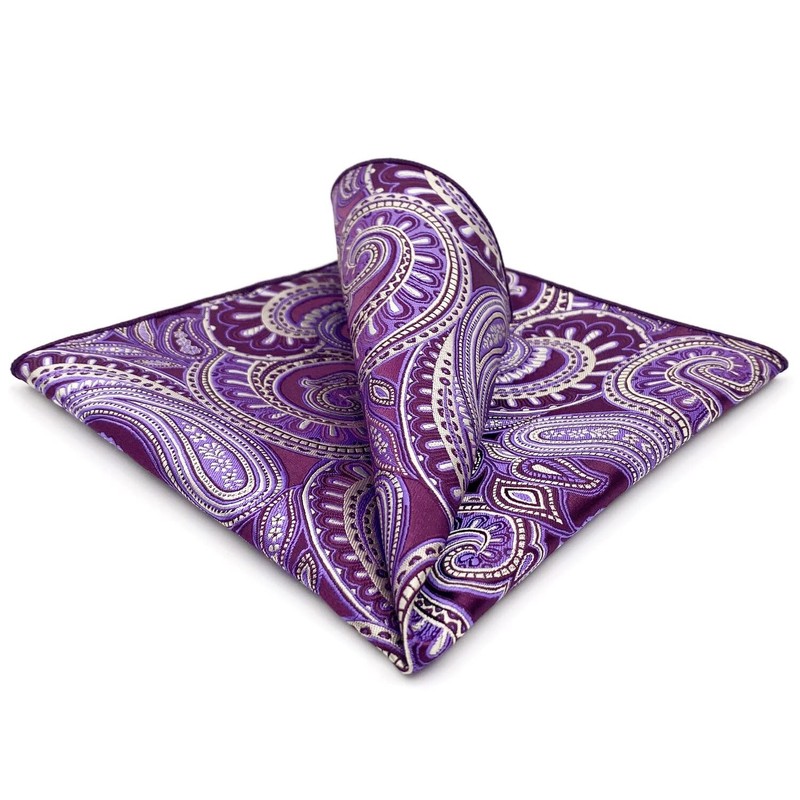 SHLAX&WING Mens Pocket Square Purple Paisley Handkerchieves Silk Hanky