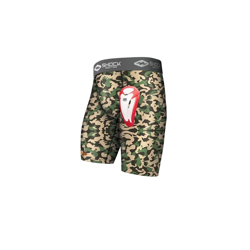 Shock Doctor Boys Compression Shorts w/Bio-Flex Supporter Cup, USA Camo, XLarge