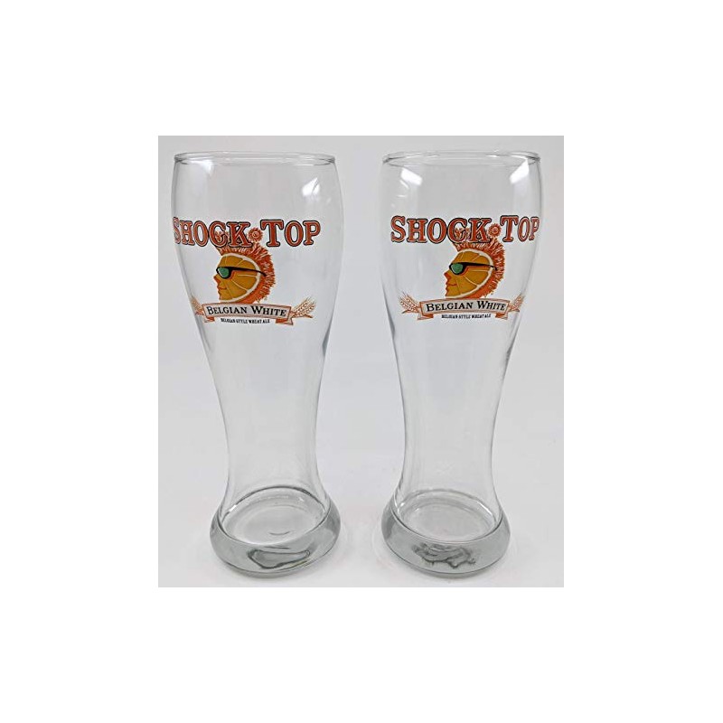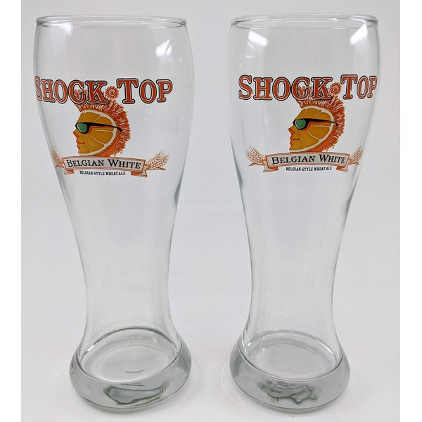 7 7/8" tall 16 oz pilsner glass with the Shock Top Belgian White logo. Set of two.