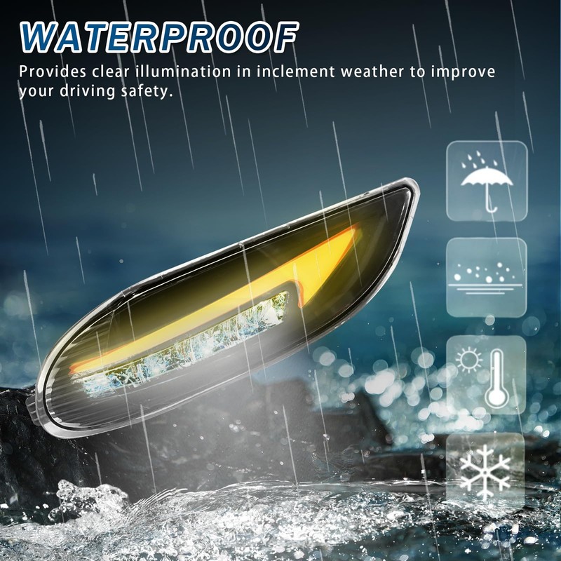 - LED fog lamps with DRL turn signal function, fog lamp light with dynamic effect, bring your vehicle a new appearance at the same time greatly improves the safety of the rack