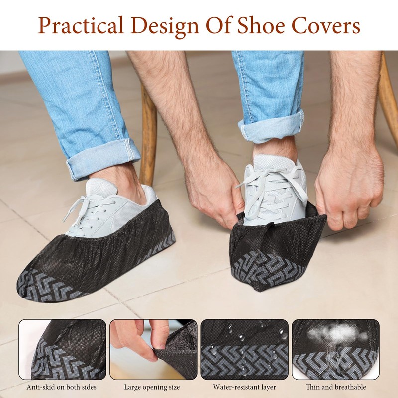Shoe Covers Disposable, Black Recyclable Shoe Covers, Booties for Shoes Covers Breathable, Shoe Booties Disposable Non-Slip Indoors, Fit Virtually Most Shoes 100pcs