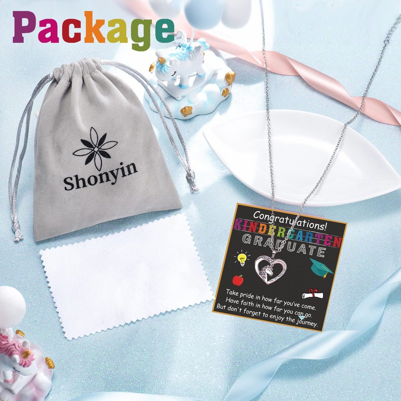Shonyin Kindergarten Graduation Gifts for Girls 2025, Unicorn Necklace for Girls Elementary Fifth Grade Grad Jewelry Gifts for Daughter Granddaughter Niece Sister Best Friend