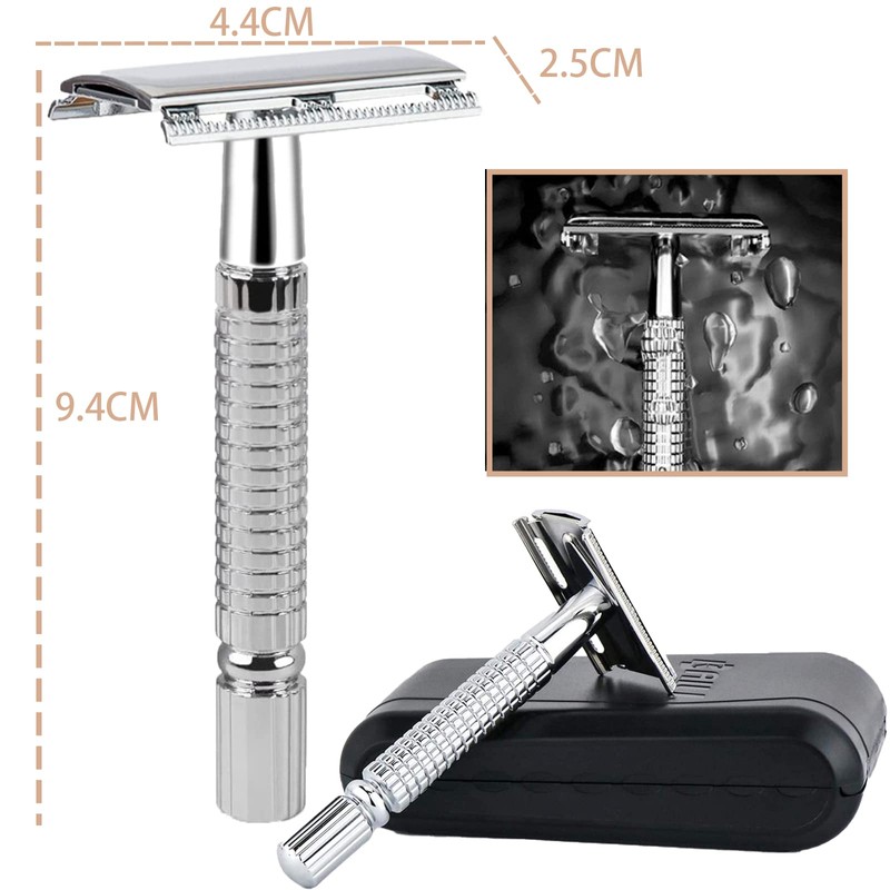 - 🧔【Seguridad y Confort】Nuestras rastrillo de doble filo proporcionan un afeitado seguro, suave y apurado, sin irritaciones ni barbas indeseadas. También hemos optimizado el ángulo de corte para reducir las rozaduras de la cuchilla, lo que elimina la irritación de la piel y el crecimiento del vello hacia dentro.