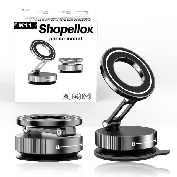 Shopellox Phone Mount,360 Foldable Magnetic Phone Mount. 2025 Upgraded Mechanical All-Alloy Material Foldable Portable Phone Holder for Car Without Charging