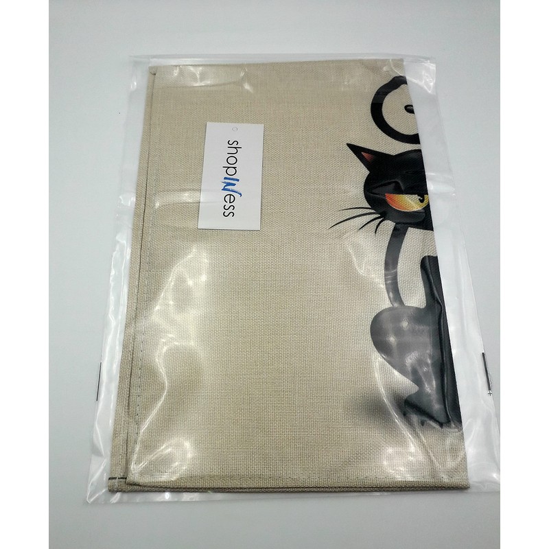 ShopINess Funny Cat Placemats for Dining Room Table Cloths Black and White American Style Tablecloths for Cat Lovers (2-Pack: Falling Cat + Zen Cat)