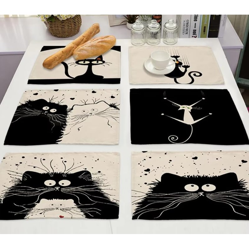 - With the dimensions 42 x 32 cm, our placemats are ideal for any table, whether for an intimate dinner party or a meeting with friends - add a touch of cat style to any special moment Available as placemats, in a pack of 2 or 4.