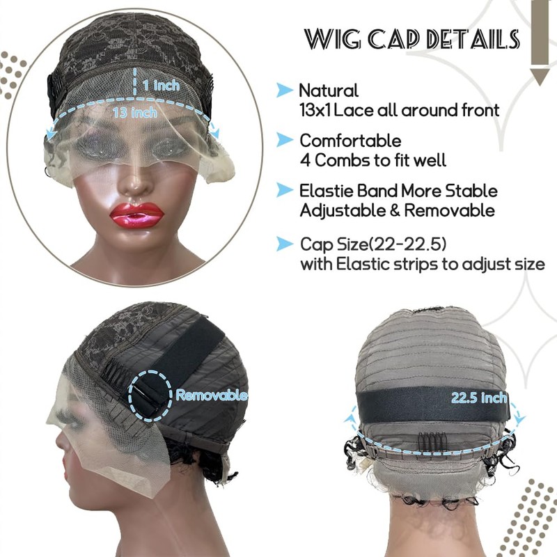 • 【Curly Bob Wigs Human Hair Cap 】Glueless Wig Use Upgraded 3D Elastic Dome Cap, Skin-Friendly Material Make It Soft and Breathable, More Comfortable to Wear. Medium Size Cap (21.5–22.5 inches), with A Removable Adjustable Elastic Belt to Keep Wig Secure.