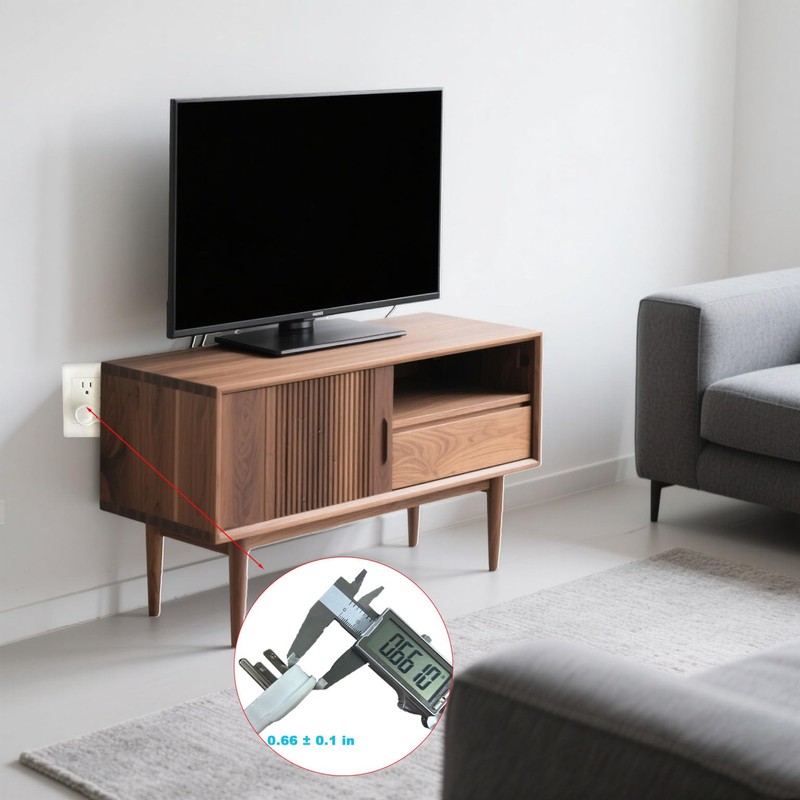 - Flat Plug: Converts a standard AC power cord into a long Thin flat plug designed for use at outlets in tight spaces such as behind furniture behind shelves, behind desks or anywhere near a wall where a standard plug cannot be used Saves a lot of space and puts furniture closer to the wall