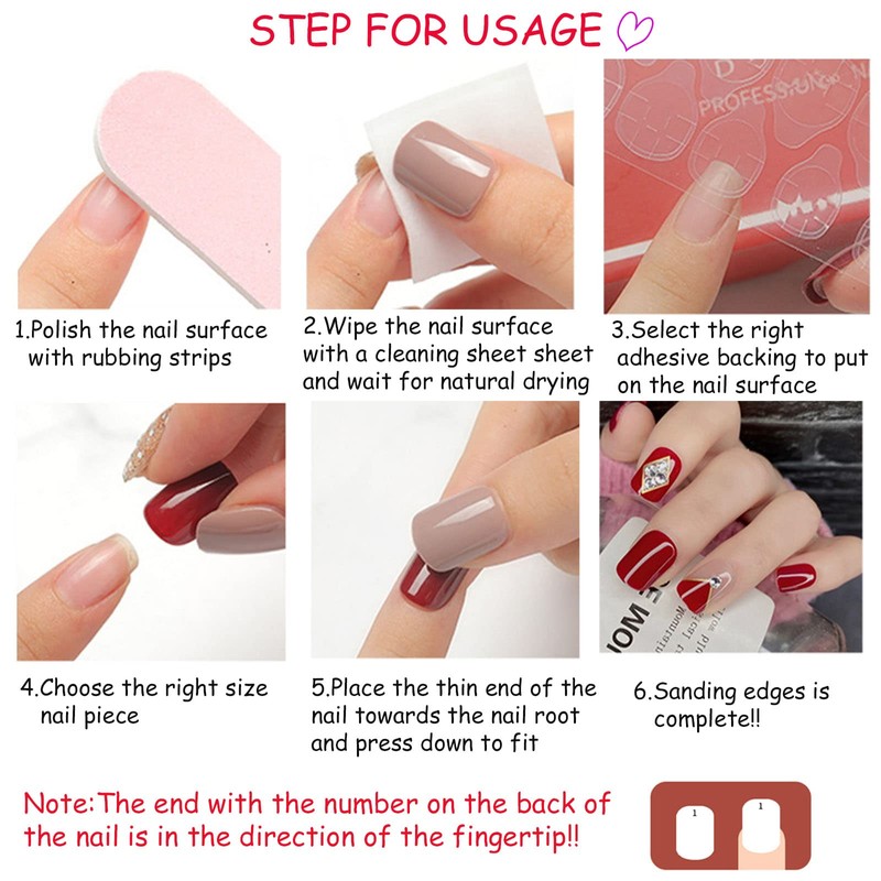 - Easy to Use:First polish and clean the nails,then apply jelly glue,(Jelly glue is not as durable as glue,but can be reused)press the nails for 10-15 seconds,and wait for the glue to solidify,you will get beautiful nails.