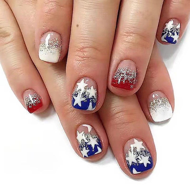 - 🗽【Patriotic Design】: Show off your american pride with our short square press-on fake nails featuring a dazzling red, blue, and white glitter french star design. Perfect for celebrating the fourth of july, american independence day, memorial day, or any patriotic occasion, these nails will add a festive touch to your look.