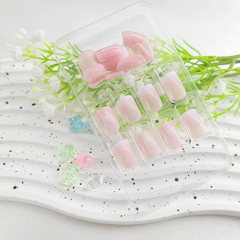 - Quick Wearing: After polishing the nail surface, wipe it clean with alcohol cotton, choose a suitable nail piece and stick it with jelly glue, press it on the natural nail for about 20 seconds, and do not contact water within 2 hours after wearing.