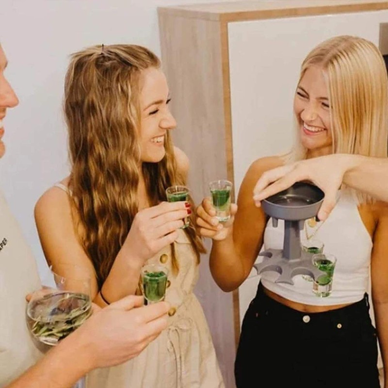 - The Glass Dispenser with six shots will allow you to easily fill up to six shot glasses at once with your favorite beverage and then hold them up, all in one! Fills up multiple shot glasses at one time, saves your time, prevents wastage, or spillages.