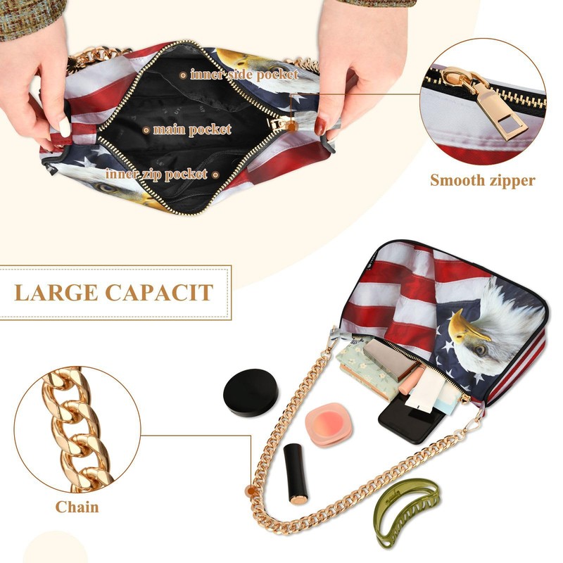 Shoulder Bags for Women American Flag HHawk Hobo Tote Handbag Small Clutch Purse with Zipper Closure