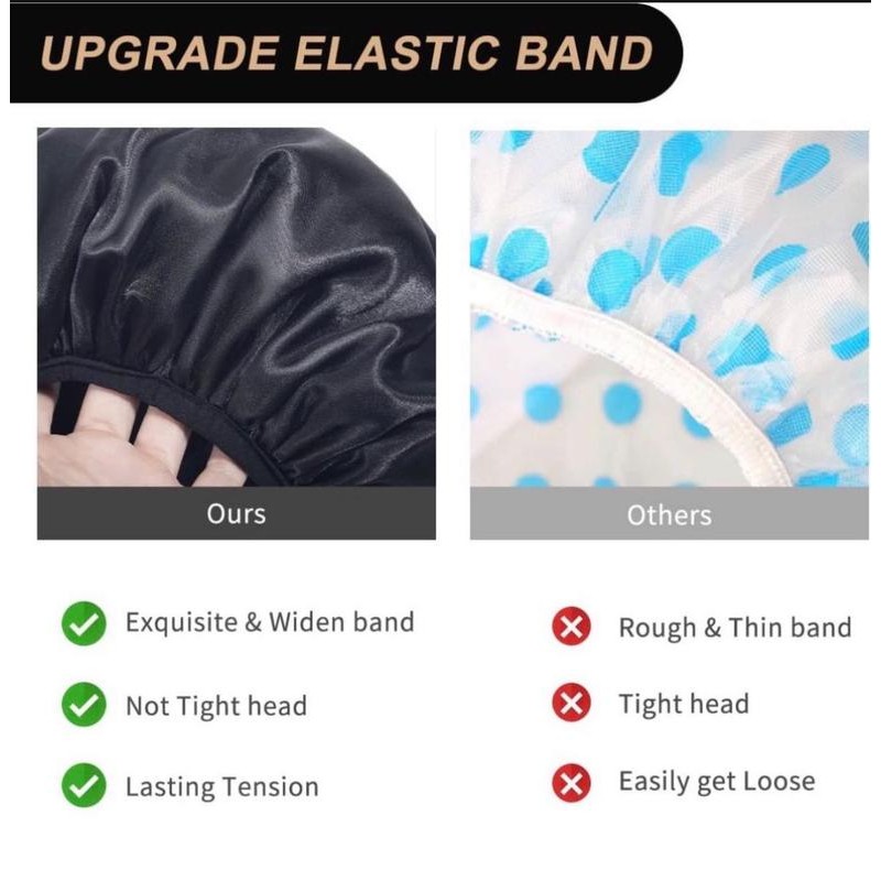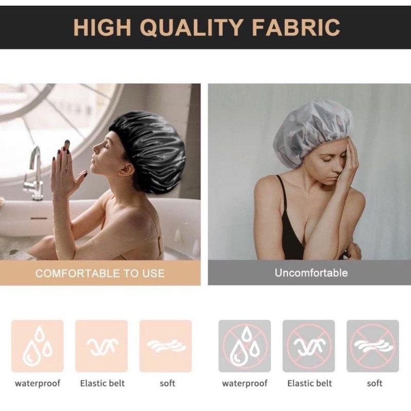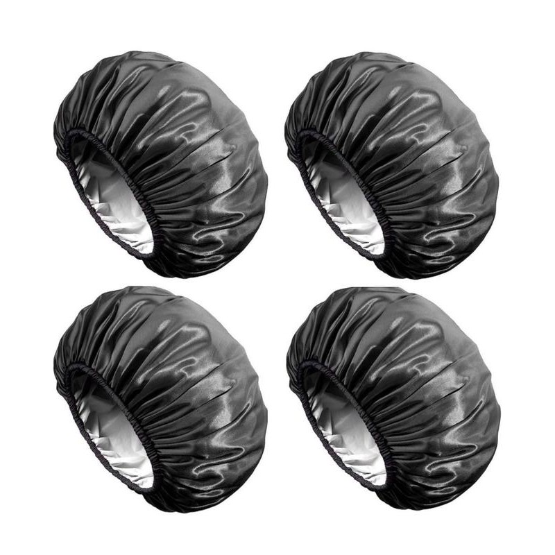 Shower Cap, Extra Large Shower Cap for Men, Satin EVA Double Layer Waterproof Reusable Hair Cap for Women Long Hair(All Black 4 Pack) satin silk