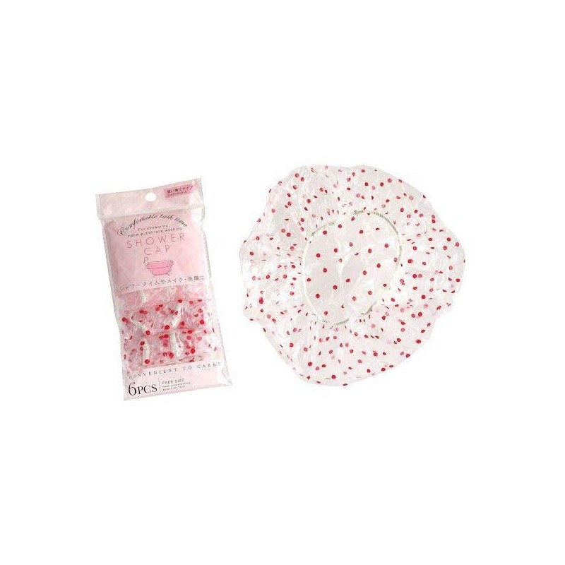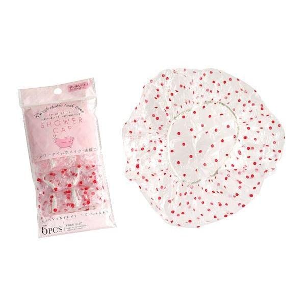 - Shower cap to hold hair together. (6 pieces) For head circumference approx. 15.7 - 27.6 inches (40 - 70 cm). Protects hair from moisture and moisture Convenient for hair dyeing and hair treatments. Keeps your hair neat and tidy. Disposable type makes it convenient to carry for travel. Cute shower cap with polka dots. Depending on the length and amount of hair you have, there may be individual differences in wearing conditions