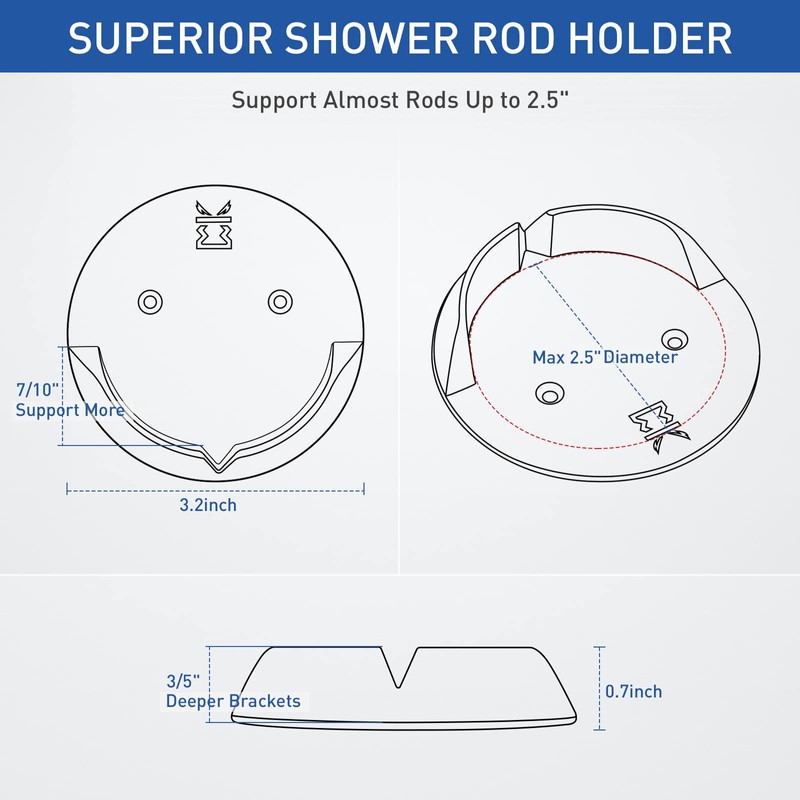 - Suitable for these rods which not over 2.5” diameter. The support bracket part is 3/5” deep , Which will hold the rods more, So the rods will more table. The surfaces are gloss. Absolutely high quality bathroom accessory