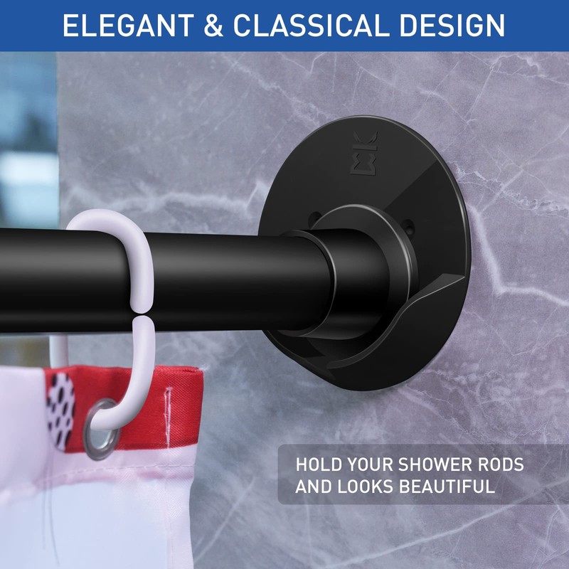 Shower Curtain Rod Holders for Wall – Kitosun Adhesive Tension Rod Retainer 3/5 Deep Support Brackets with Tape for No Drilling Quick Mount and Screws for Permanent Installation (2pairs, Black)