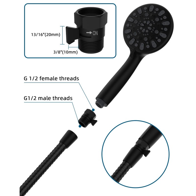 - Universal Connection: G1/2’’ IPS female inlet and 1 X G 1/2’’ IPS male outlet, standard straight thread connections fit most shower heads, shower arms, hoses and water pipes.